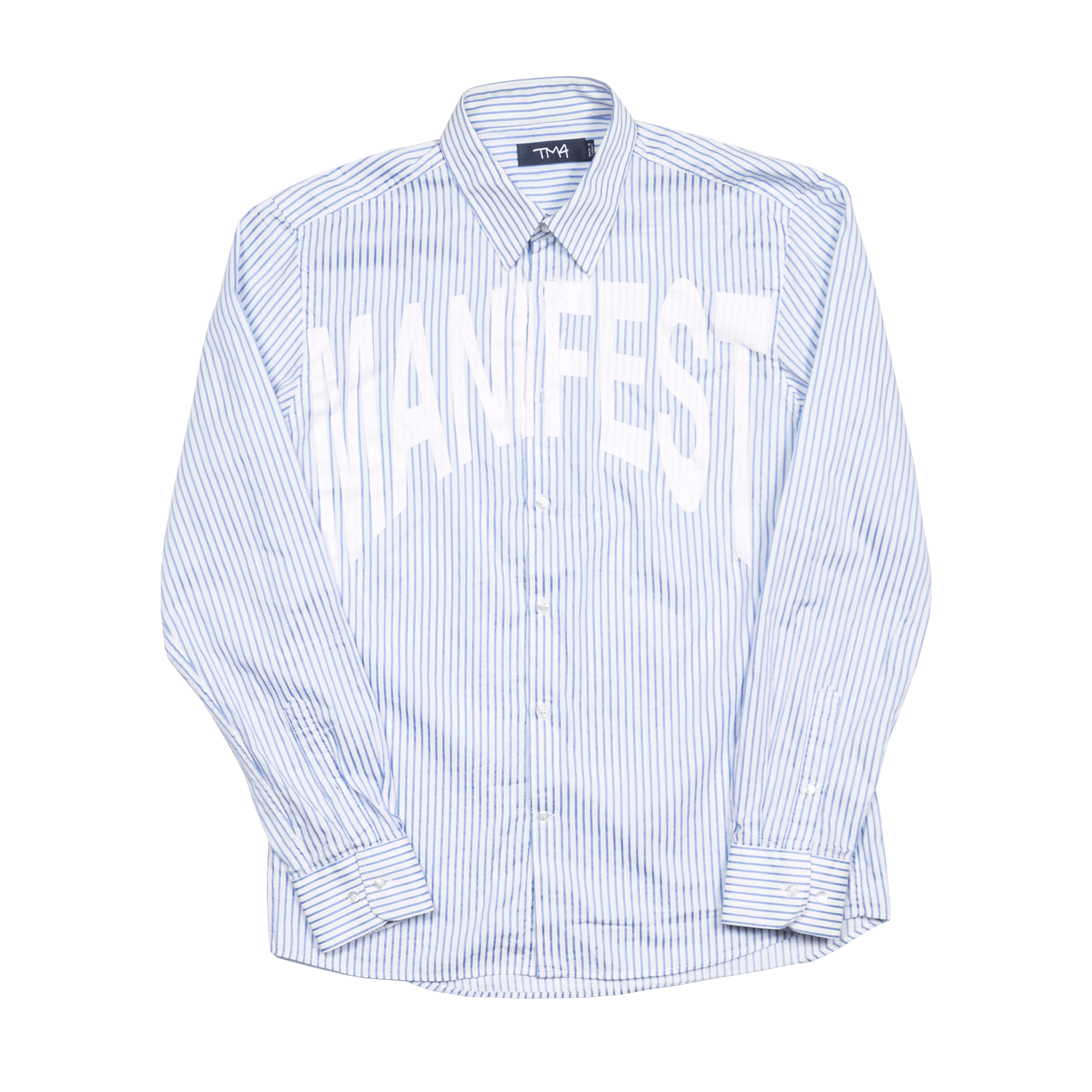 Button-up shirt featuring a “Manifest” screenprint on the front. A classic silhouette with a statement graphic, designed for everyday wear and easy styling.