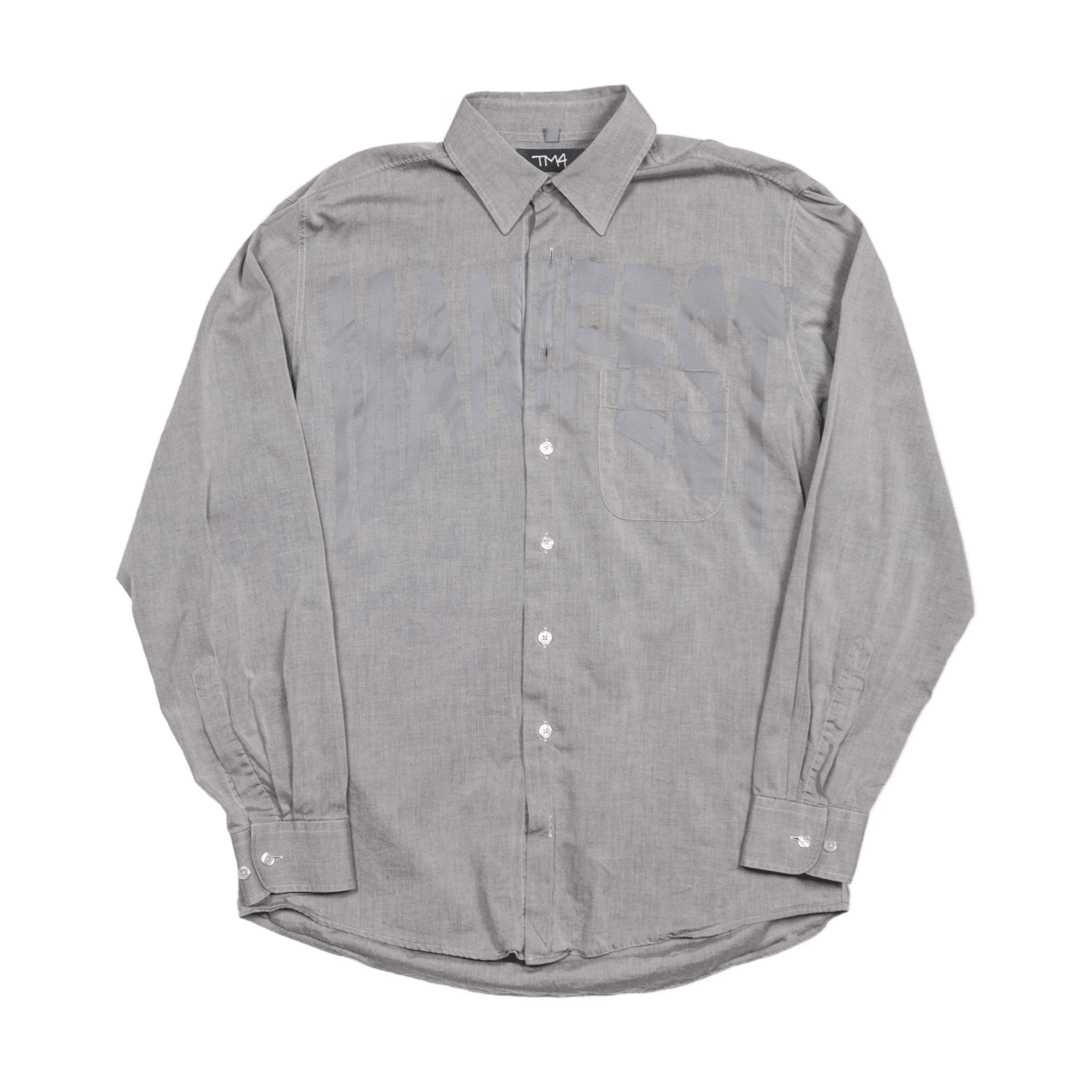 Button-up shirt featuring a “Manifest” screenprint on the front. A classic silhouette with a statement graphic, designed for everyday wear and easy styling.
