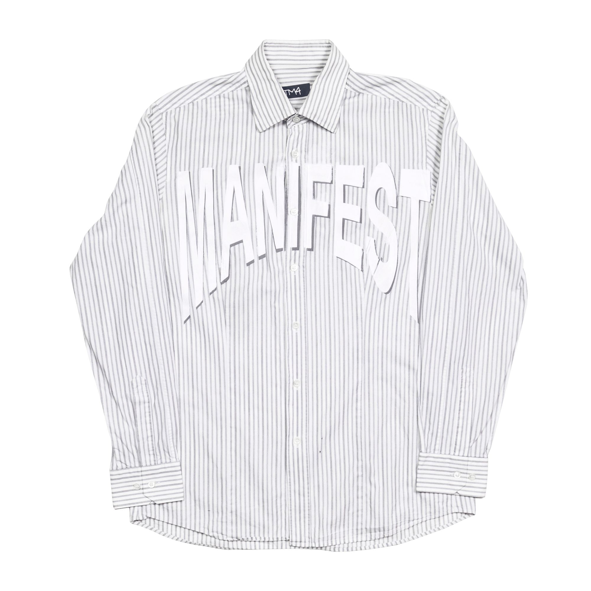 Button-up shirt featuring a “Manifest” screenprint on the front. A classic silhouette with a statement graphic, designed for everyday wear and easy styling.