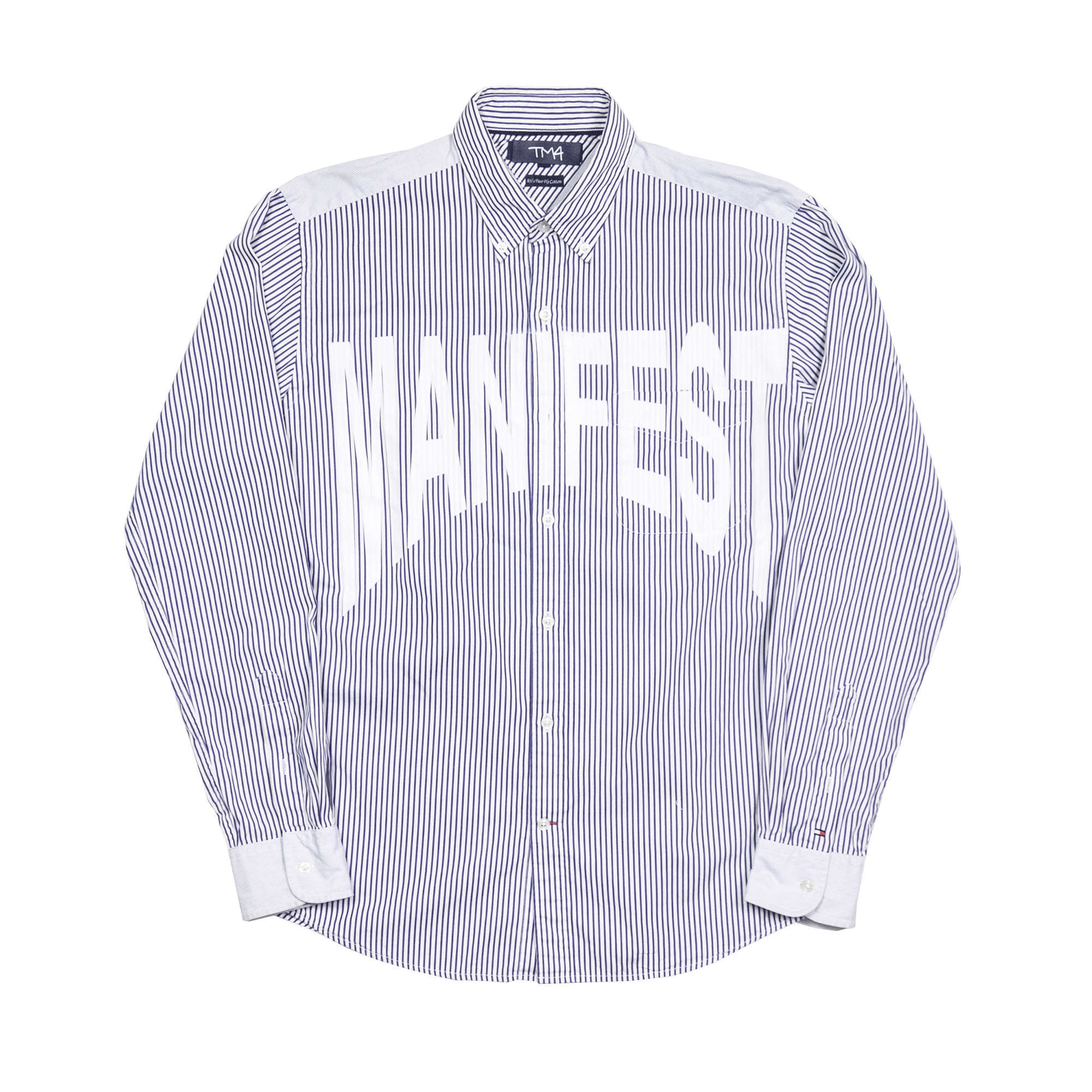 Button-up shirt featuring a “Manifest” screenprint on the front. A classic silhouette with a statement graphic, designed for everyday wear and easy styling.